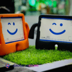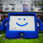 Stylish and protective light blue tab cover with handles, designed for Samsung Galaxy and Lenovo tablets. Features a built-in stand for easy viewing and durable protection.