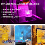 Plug it into any USB port for instant illumination. The built-in LED module cycles through a spectrum of warm and cool tones, delivering both soothing comfort and visual excitement. This compact lamp is perfect for desks, shelves, nightstands, or party tables—and makes a lovely gift for creators, social media enthusiasts, newlyweds, and ambient-light lovers alike