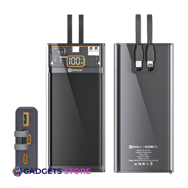 Space Speed PD + QC 3.0 Power Bank 20000 mAh (Built-in Cables + Digital Display)