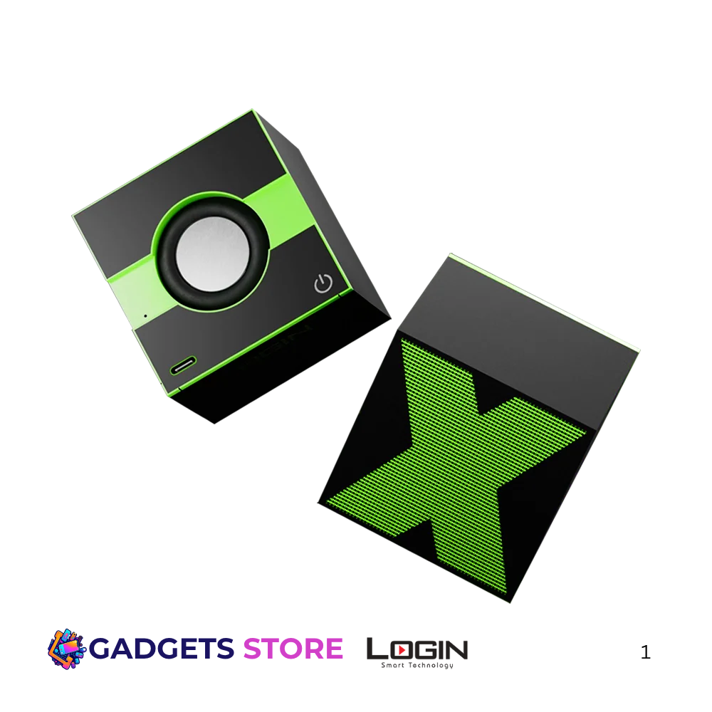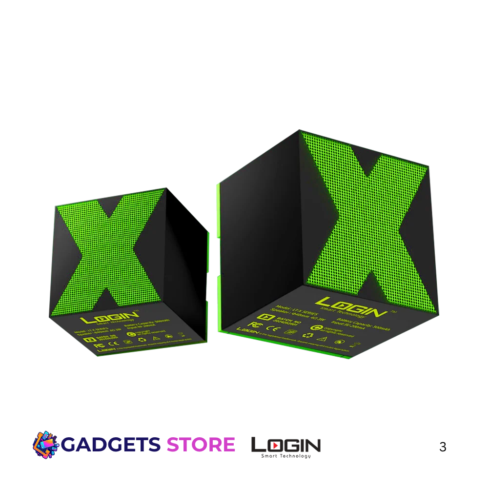The Login LT‑X Series Wireless Speaker features dual stereo drivers, Bluetooth 5.1 with TWS capability, and a built-in mic in a compact portable cube.