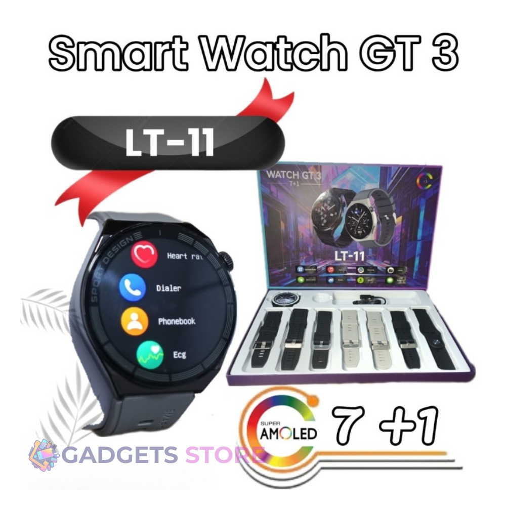 The LT-11 Smart Watch GT 3 is a stylish, high-performance smartwatch built for modern lifestyles.Its vivid HD touchscreen and Bluetooth calling feature keep you connected effortlessly.Track your heart rate, sleep, steps, and more with smart health sensors.Ideal for daily wear, fitness tracking, and staying in control on the go