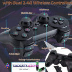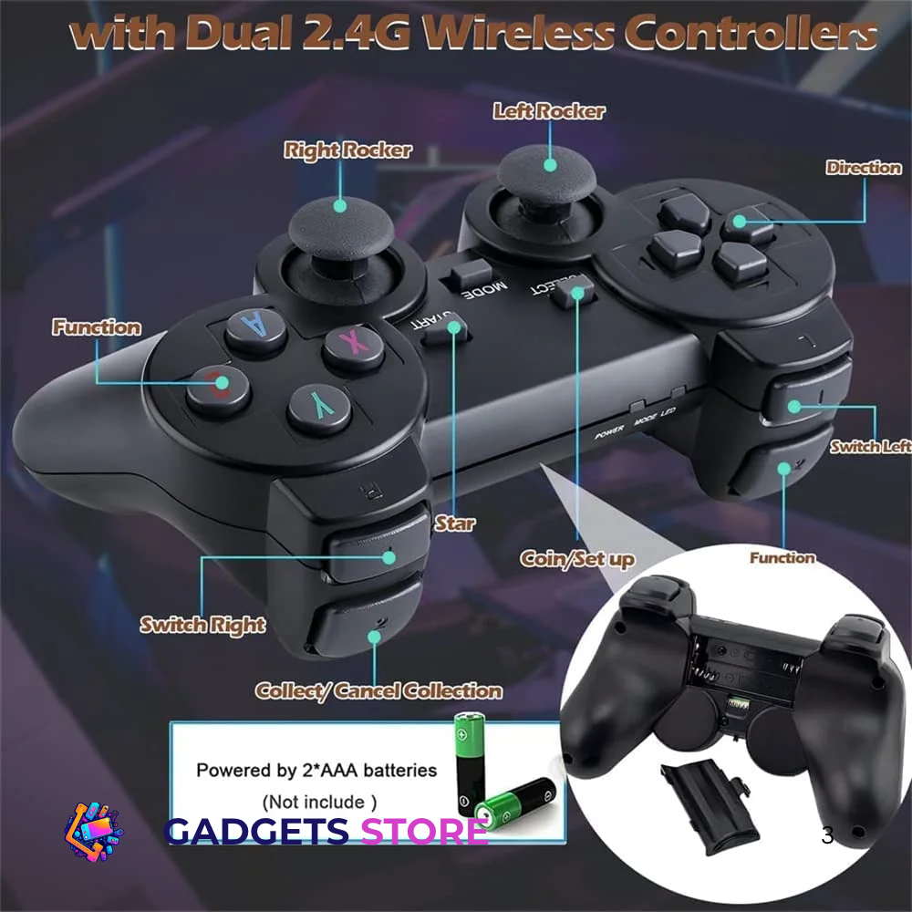 - 2.4G Wireless Controllers: Two ergonomic controllers for lag-free, two-player gaming.