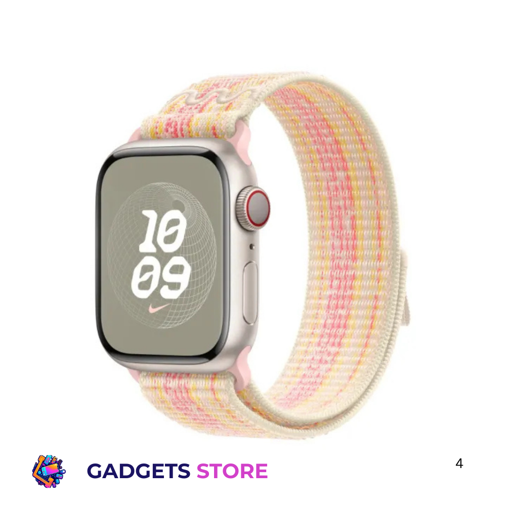 Versatile nylon sport loop straps compatible with multiple smartwatch models, including Apple Watch Series 9, Ultra, Ultra 2, and other popular models. Available in Starlight/Pink.