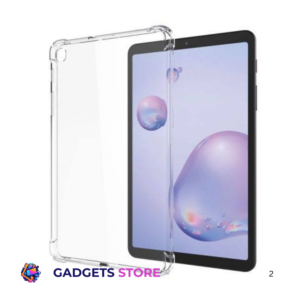 Clear, lightweight TPU airbag cover for Samsung Galaxy Tabs. Offers shockproof protection with a soft, transparent silicone design.