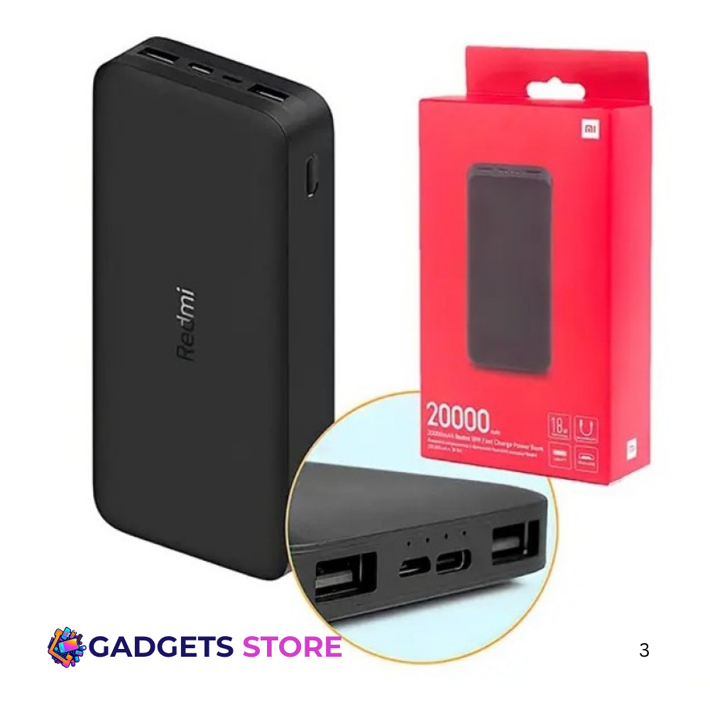 Stay powered all day with the Redmi Power Bank (20,000 mAh). Featuring dual input (USB‑C & Micro‑USB) and dual USB‑A outputs with 18W fast charging, it’s a reliable travel companion for all your devices.